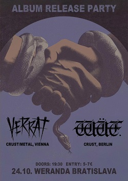 (Všetky informácie bez záruky! Pošlite nové koncerty alebo zrušenia na adresu: info[at]capeet.com) Archív: [2025] [koncerty v Rakúsku] 43: 24.10.: VERRAT (aut) / RAID SIREN @ Weranda, Bratislava [WÜT cancelled.] [fb] 24.10.: BESNA / OHEN / HOLOTROPIC / MORTHYMER (cz) @ 10Bar, Trnava [fb] 24.10.: HATE CONTROL / CROSS THIS BRIDGE / VOICE OF REBELLION @ Erko, Levice [fb] 24.10.: ROZPOR / LUTRA / SISTEM ERORR / FAJRONT @ Bosorka, Banská Bystrica [fb] 24.10.: NO VIDA (cz) / The OWLS (cz) / LACHSFARBE LINKS (aut) @ Hájovňa, Žilina [fb] 24.10.: MATCHING OUTFITS (ger) @ Stanica, Žilina [cancelled.] 25.10.: BOTFLY (can) / DESPITEEVERYTHINGITSSTILLYOU (fra) / SOAPLESS / OTEC @ Weranda, Bratislava [fb] 25.10.: LIQUIDS (usa) / C.A.M.O (aut) @ Žalár, Bratislava [fb] 25.10.: MATCHING OUTFITS (ger) @ Pink Whale, Bratislava [fb] 25.10.: VTOROI KA (kgz) @ Pink Whale, Bratislava [fb] 25.10.: BANNED FM / AWAKEN MEMORIES / DIVÁ ZVER @ Mariatchi, Nitra [fb] 25.10.: BEAUTIFUL BASTARDS / DR. PAKO @ Rock House, Topoľčany [fb] 25.10.: HATE CONTROL / CROSS THIS BRIDGE / CHORA DOBA @ Kocka Musicbar, Martin [fb] 25.10.: BESNA / HOLOTROPIC / MORTHYMER (cz) @ Klub Lúč, Trenčín [fb] 25.10.: W.A.S.P. (usa) @ Event House, Žilina [fb] 25.10.: HELLOWEEN (ger) / BEAST IN BLACK (fin) @ Zimný Štadión, Zvolen [fb] 25.10.: GRAVEKVLT (fra) @ Collosseum Club, Košice [fb] 25.10.: EMPATHY TEST (uk) @ Randal Club, Bratislava [cancelled.] 26.10.: TERMINATOR X (cz) / LILIxELBE (cz) / LICKSPIT (cz) @ Kubik, Trnava [fb] 26.10.: THESE NEW PURITANS (uk) @ Majestic Music Club, Bratislava [cancelled.] 44: 27.10.: SUFFERING HOUR (usa) / ARTIFICIAL BRAIN (usa) / DEVOID OF THOUGHT (ita) @ Žalár, Bratislava [fb] 28.10.: HIBUSHIBIRE (jpn) @ Pink Whale, Bratislava [fb] 28.10.: MEPHISTOFELES (arg) @ Žalár, Bratislava [fb] 28.10.: ARTIFICIAL BRAIN (usa) / SUFFERING HOUR (usa) / DEVOID OF THOUGHT (ita) @ Collosseum Club, Košice [fb] 28.10.: VLURE (uk) @ Tabačka, Košice [web] 29.10.: GOATBURNER (fin) / M.O.R.A. (fin) @ Weranda, Bratislava [fb] 29.10.: DLINA VOLNY (blr) @ Žalár, Bratislava [fb] 30.10.: BRATISLAVSKÉ DIEVČATÁ / ZEMĚŽLUČ (cz) @ Pink Whale, Bratislava [fb] 30.10.: HOTHOUSE (cz) / COLATURA (usa) / PANCAGE @ Nová Cvernovka, Bratislava [web] 30.10.: DAVOVÁ PSYCHÓZA / SARGAZMUS @ Stromoradie, Prešov [fb] 30.10.: AGGREVIL (slo) / LIVEREGGA (slo) / ŽRIEBÄDLO @ Collosseum Club, Košice [fb] 31.10.: STERCORE / ZONYA / UNDER MY ISSUE @ Žalár, Bratislava [fb] 31.10.: The KARNSTEINS @ Rock House, Topoľčany [fb] 31.10.: SHADOW OF TELEVISION / The WILDERNESS / Dafy & The RAFTERS @ Erko, Levice [fb] 31.10.: KOSMONAUCI (pol) @ Výklad, Banská Bystrica [web] 31.10.: DAVOVÁ PSYCHÓZA / DISTAX / MY O VLKOCH @ Koľaj 22, Poprad [fb] 31.10.: ADACTA / WOLNERA / CONCUSSA / DIRT @ Šport Klub, Sačurov [fb] 01.11.: GEAR (hun) / AURELIUS (cz) / SSS (slo) / RAFUDA (slo) @ Weranda, Bratislava [fb] 01.11.: BRIZOLIT / SILENT GERENATION (cz) / KOVOŠROT@ Žalár, Bratislava [fb] 01.11.: The KARNSTEINS / MARHALEN @ Zbrojnoš, Bratislava [fb] 01.11.: KOSMONAUCI (pol) @ Pink Whale, Bratislava [fb] 01.11.: HANGOVER IN MINSK (pol) / SOLIPSISM / SUKKHU (cz) @ Frankie, Nitra [fb] 01.11.: DEAR DEER (fra) @ Mariatchi, Nitra [fb] 01.11.: DAVOVÁ PSYCHÓZA / FAJRONT @ Záhrada, Banská Bystrica [fb] 01.11.: WAYD / CONTEMPT / DEMONIC-EYED / NEURAL PRISON @ Stromoradie, Prešov [fb] 45: 03.11.: PROFANATICA (usa) / SPITER (usa) / OTRAS (cz) @ Žalár, Bratislava [fb] 07.11.: FRUIT TONES (uk) @ Žalár, Bratislava [fb] 07.11.: IDA THE YOUNG (cz) / SCIENCE KILLER (cz) / Thee LAZY EYES (cz) / Mr. Pink & The BAD THOUGHTS (cz) @ Pink Whale, Bratislava [fb] 07.11.: CLOUDS (rom) / OHEN / SAMSARA @ Frankie, Nitra [fb] 08.11.: INGROWING (cz) / ADACTA / SANGRE DE IDIOTAS @ Mariatchi, Nitra [fb] 08.11.: TORTURED CORPSE (pol) / BRAIN DEALERS / REEK OF DEATH (aut) / ŽRIEBÄDLO @ Royal Club, Krupina [fb] 08.11.: BERLIN MANSON / Dušan Vlk @ Collosseum Club, Košice [fb] 46: 10.11.: HYPERDONTIA (tur/den) @ Žalár, Bratislava [fb] 11.11.: The YOUNG GODS (ch) @ Trnko, Bratislava [fb] 11.11.: Beaux Gris Gris & The APOCALYPSE (usa/uk) @ Múzeum Obchodu, Bratislava 13.11.: TREASONDOM (rom) / KOMBI (bra) / RAID SIREN @ Weranda, Bratislava [fb] 13.11.: DAVOVÁ PSYCHÓZA / TRAVEX @ Pink Whale, Bratislava [fb] 14.11.: TREPANERINGSRITUALEN (swe) / ZERO KAMA (aut) / ORDO ROSARIUS EQUILIBRIO (swe) / INADE (ger) et al. @ A4, Bratislava [fb] 14.11.: NIGHT SLASHER (lit) / HELLHAIM (pol) / SUNSTRIKE @ Music Factory, Banská Bystrica [fb] 14.11.: ČAD / LAID TO WASTE (cz) / ABYSS ABOVE @ History Art & Music Club, Humenné [fb] 15.11.: XIU XIU (usa) / TROUM (ger) / AFRICAN IMPERIAL WIZARD (ang) / FRETT (pol) et al. @ A4, Bratislava [fb] 15.11.: NARCOTIC WASTELAND (usa) @ Pink Whale, Bratislava [fb] 15.11.: MARHULE / PONDĚLNÍCI (cz) @ Pink Whale, Bratislava [fb] 15.11.: PONS (usa) @ Pink Whale, Bratislava [fb] 15.11.: DOGMA INC. / GÁGOR / SECTESY (cz) @ Frankie, Nitra [fb] 15.11.: TOMÁŠ PALUCHA (cz) @ Klub Lúč, Trenčín [fb] 15.11.: KARAVANA / RUMASKA / C4C @ Kocka Musicbar, Martin [fb] 15.11.: PERLY SVINÍM (cz) / HORS DE COMBAT / BRAINLESS @ Bosorka, Banská Bystrica [fb] 15.11.: DIN-ADDICT (hun) / RMUT (cz) / OROS / CANVASSER / INPROBUS @ Rév Klub, Komárno [fb] 15.11.: ČAD / LAID TO WASTE (cz) / ABYSS ABOVE @ Collosseum Club, Košice [fb] 16.11.: DRŤ / XCES @ KC Ľadovňa, Bytča [web] 47: 17.11.: The TROOPS OF DOOM (bra) / REFORE (cz) / HOMO PRIMITIVE @ Randal Club, Bratislava [fb] 18.11.: Vinnie Stigma (usa) / VOLORES (usa) @ Collosseum Club, Košice [fb] 19.11.: GUTTURAL SLUG (den) / COPROCEPHALIC MUTATION (uk) / NECROTIC GORE BEAST (can) @ Collosseum Club, Košice [fb] 20.11.: DAVOVÁ PSYCHÓZA / UHOL DOPADU @ Klub Lúč, Trenčín [fb] 21.11.: AMALIA BLOOM (ita) / TRAUMA GLOW (aut) @ Weranda, Bratislava 21.11.: TALEBRINGER / PATER TENEBRARUM (aut) / RESIDUAL / LUCENT @ Pink Whale, Bratislava [fb] 21.11.: ČAD / KORN SK / CRIPPLED FINGERS